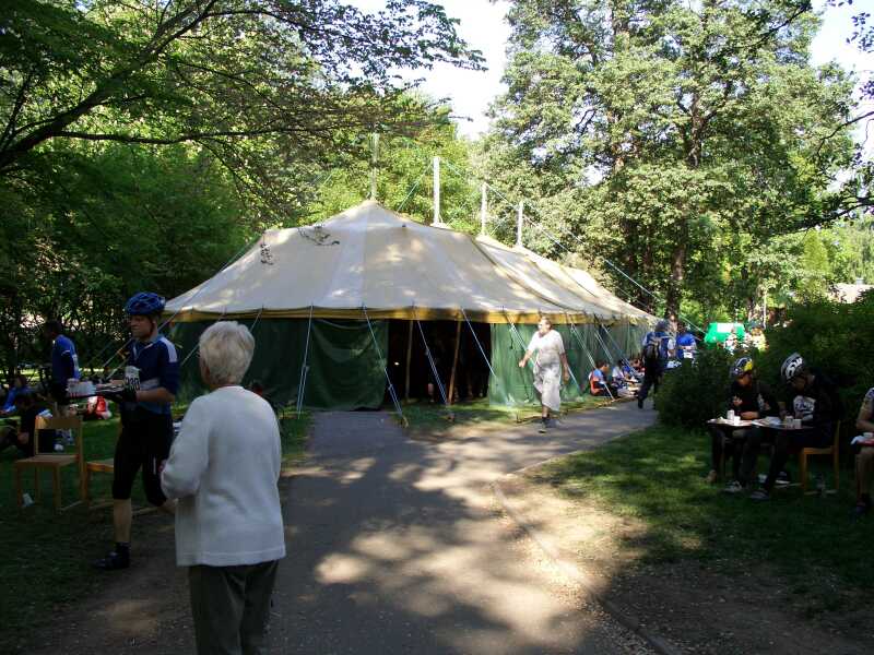 Nun bin ich endlich in Hjo angekommen, hier gibt's Lasagne! Für den späten Vormittag ist das OK! |